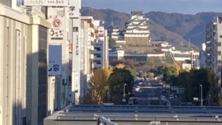 姫路駅(新幹線・在来線)のホームの真正面にお城が見えます。これには理由があることをお城の最上階で説明することにしています。「姫路駅の在来線、新幹線のホームからお城の写真を撮ることができます。それは前姫路市長の石見氏のおかげです。石見氏は市長...