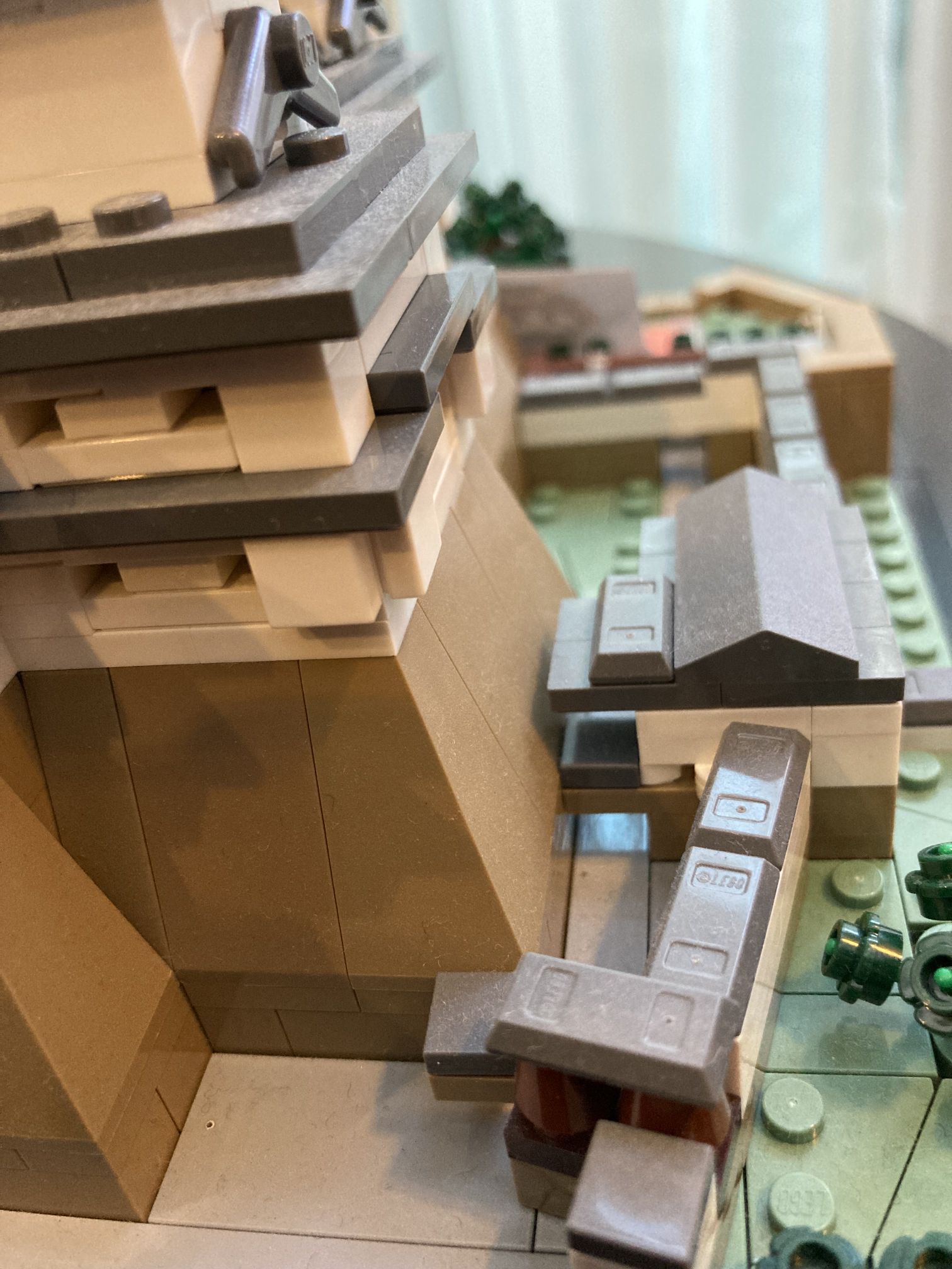 組み立てに取りかかる前、「レゴ姫路城は、大まかな形だけ似せているのだろう」と考えていました。しかし、そうではありませんでした。非常に精巧に作られています。例えば、水の門は水一門から五門まで、正確に配置され、形状もそのままです。