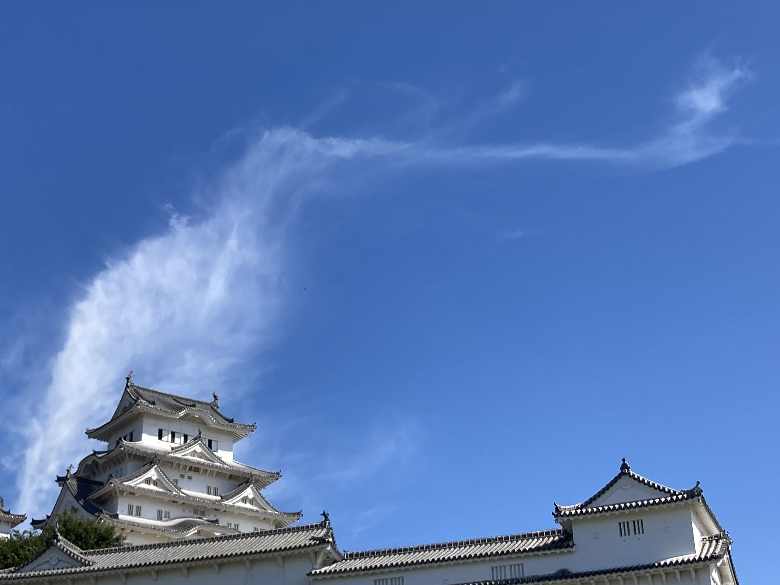 それぞれ、俳句の季語にもなっていて、秋の雲はまさに日本人の審美眼を表しているような気がします。そして今日、大天守の後ろから天に向かって勢いよく昇っていく龍のような雲を見つけました。