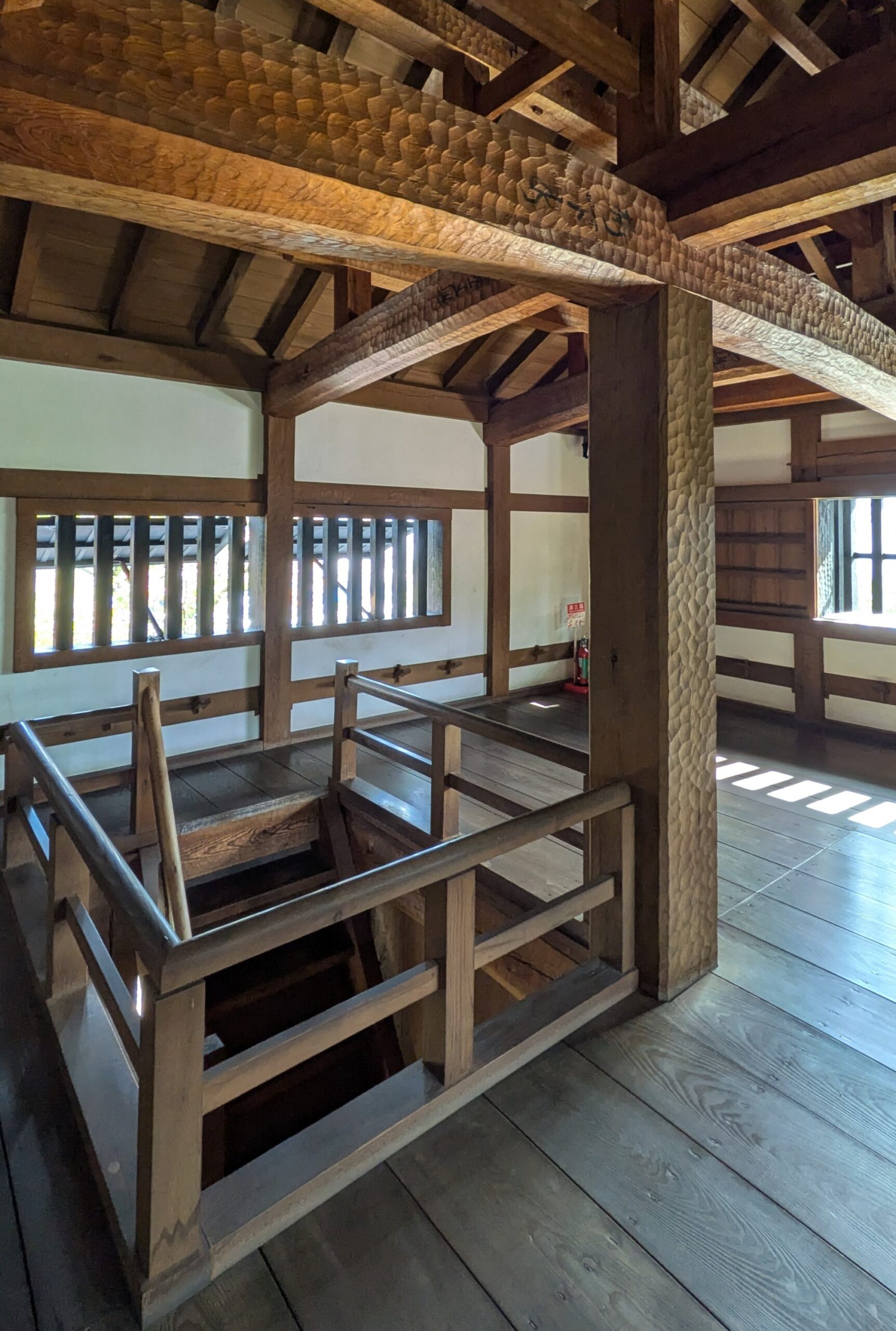 11月上旬の三連休に国宝5城のひとつ、松江城に行って来ました。今回は石垣の刻印探しと遊覧船での堀川一周が目的でしたが、現存天守の内部はもちろんのこと、平成12〜13年に木造復元された櫓3棟の内部も見てきました。写真は南櫓の二階です。手斧削りで仕上げられた柱に見惚れつつ梁に墨書がしっかり再現されているのを見つけて嬉しくなりました。VEGAのメンバーになっていなかったら気づかなかったかも。