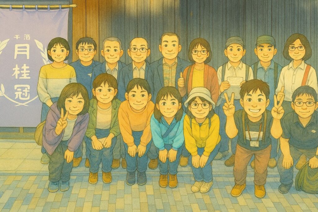 計画者の私が今回特に自信をもって予約したランチは、伏見の街の中心近くにある「月の蔵人」さんです。ここでは総勢16名の我々のための大部屋で和風の会席がいただけました。16杯の乾杯用のドリンクが揃うのを待ちきれない数名のメンバーは、それより早く来るとスタッフに言われた瓶ビールを選択。恐るべし依存度。しかしその期待は外れ、店側は気を遣ってか全員分と瓶ビールを同じタイミングで持ってきたので、彼らはその手を震わせながら待たされたのでした。しかし待った分だけ余計その黄金の液体は五臓六腑に染みわたるのでした。(もちろん私もかくいう一人)