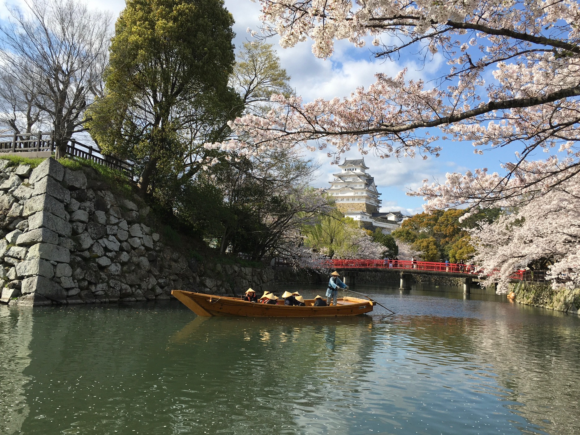 でも、今や観光客はみんなカメラマンそしてカメラウーマン。メモリーの容量が大きくなったせいでしょうか、北欧系の観光客も人物をちゃんと撮っています。以前は菱の門前で簡単に説明をし、門を抜けると「さあ、カメラを持っている方はどうぞ写真を撮ってください」と案内したのですが、今ではみんなスマホを持っているので、”Everybody, picture time!”と叫んでいます。姫路城は1番最初に突然メインディッシュが来るのですからインパクトが半端じゃない。更に見る角度でお城の表情が変わる。それをスマホでバチバチ撮り、SNSでアップする。姫路城の人気が高いのは高性能になったスマホのおかげだと三左衛門は思っています。上の写真は最近定番となったある所から撮った写真ですが、これはどこから撮ったものか姫路市民でも知っている人は少ないでしょう。でも、毎春外国人が撮影に来ています。どこで知ったのでしょうか?驚きです。城郭マニアの知人が三左衛門にこう言いました。「姫路城の縄張りは大坂城や熊本城なんかと比べると完全に負けている。でも、フォトジェニックとういう点で見ると断トツの1位だ。」 御意。