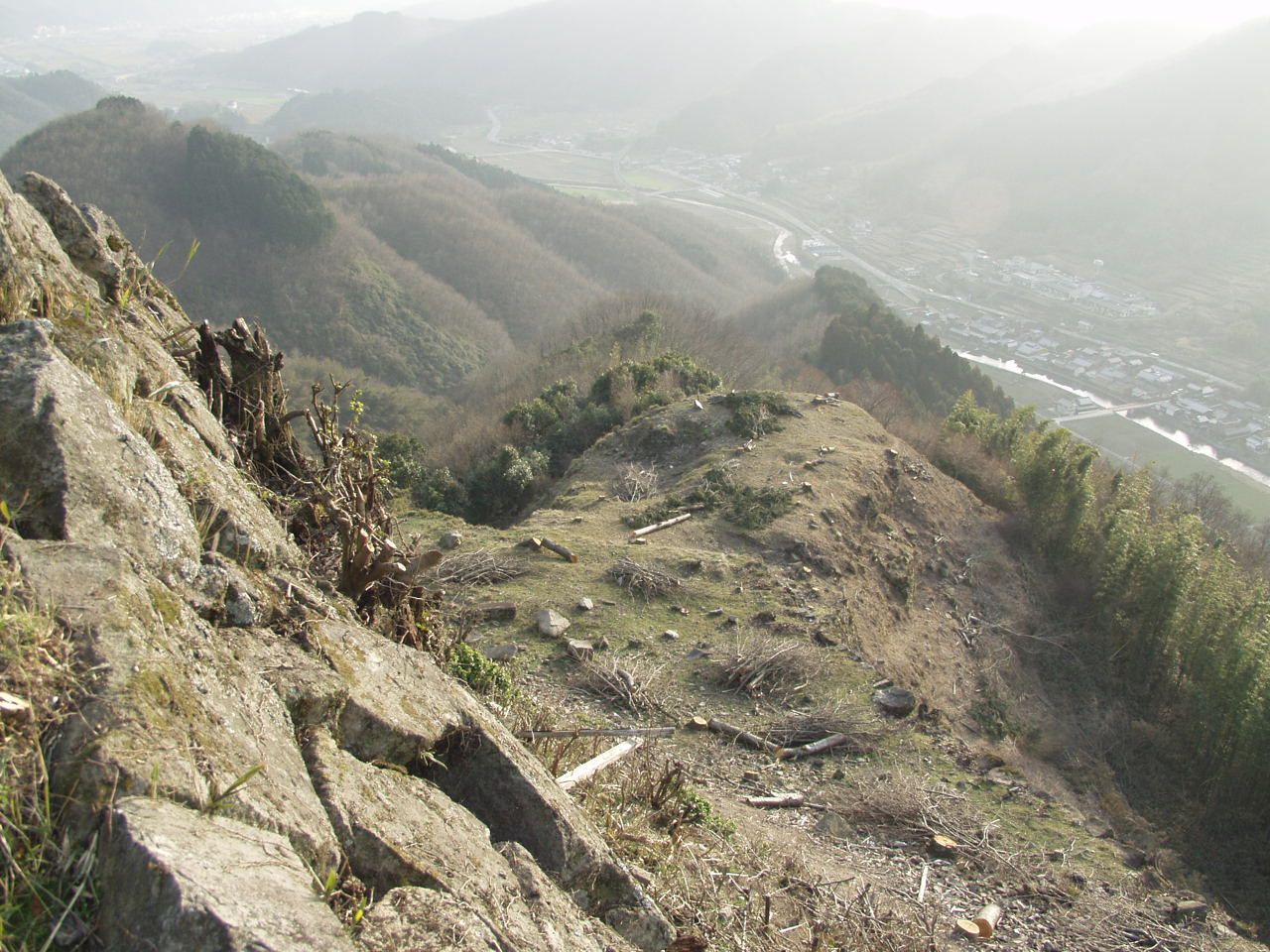 NHKの撮影班に同行し教育委員会と相談も終え、隔日の取材連絡の合間に本番に備えて友人と伝説のお菊井戸を清掃し、持参したお茶で一息ついていたときのことです。突然私たちの傍らの山城の石垣の一つが崩れ急斜面を、どかん、どかんと最後にはそれが尾を引くように木霊しながら谷底に転がっていきました。